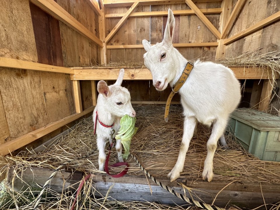 2匹のヤギは今カフェで出た野菜の皮や端の部分など