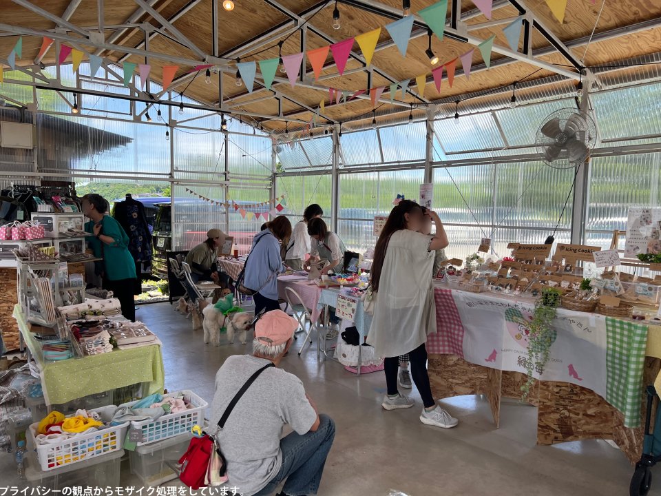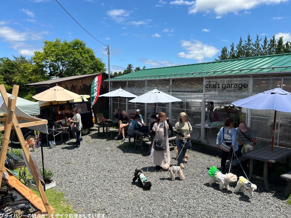 craftgarageの中ではわんちゃんと同伴でも食事ができる席をご用意、半分のスペースではペット用品やわんちゃんグッズの販売、アニマルコミュニケーションなどの出店がありました。